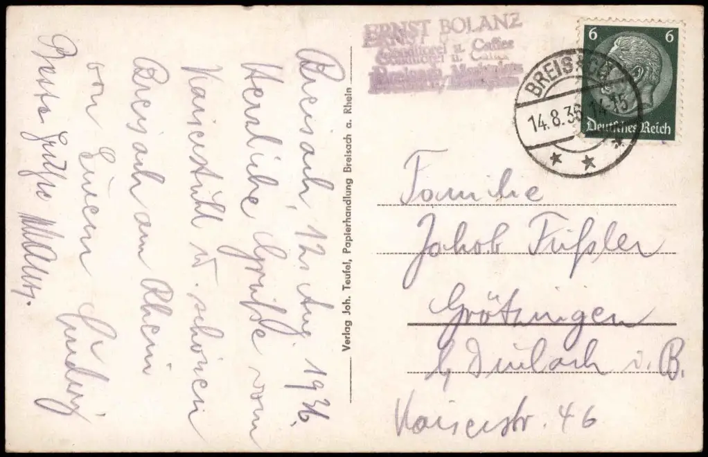 Ansichtskarte Breisach (Rhein) Blick auf die Stadt 1936