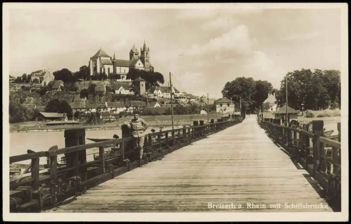 Ansichtskarte Breisach (Rhein) Rhein mit Schiffsbrücke 1930