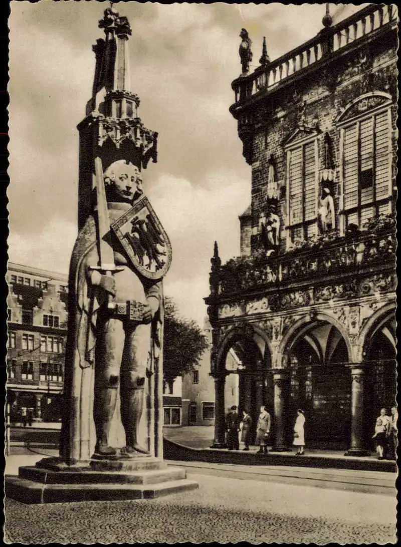 Ansichtskarte Bremen Rathaus mit Roland Denkmal 1956