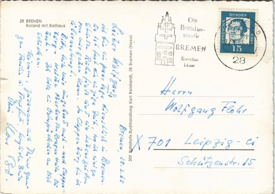Ansichtskarte Bremen Roland mit Rathaus 1965