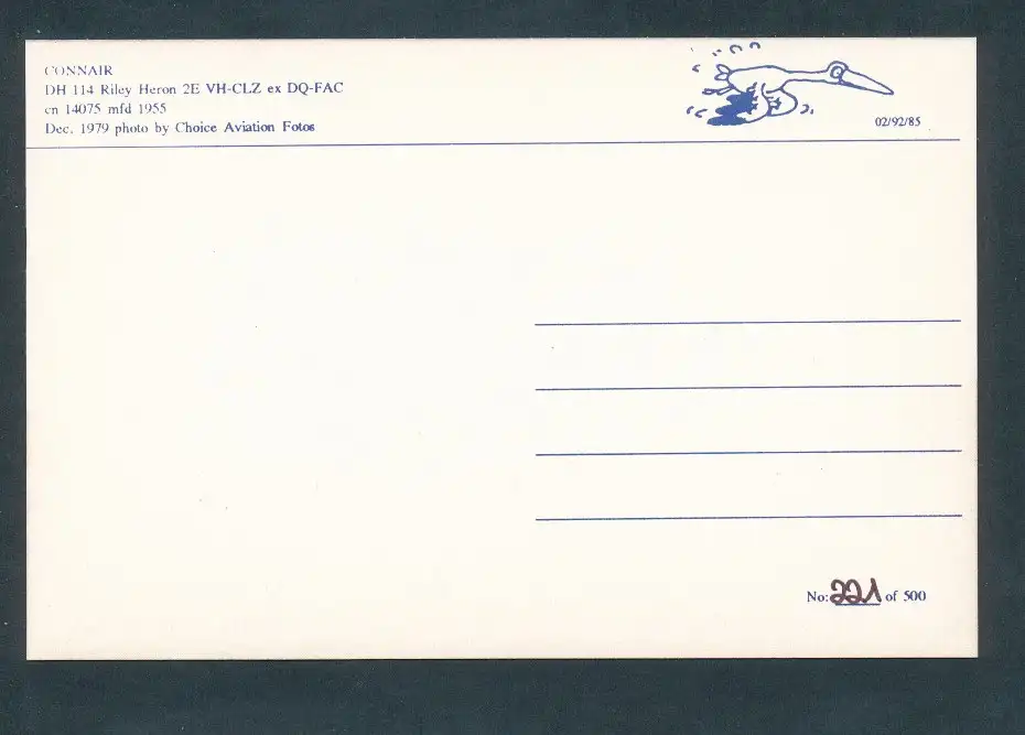 Flugzeuge Zivil Connair DH 114 Riley Heron 2E VH CLZ ex DQ FAC Kat. Airplanes Avions