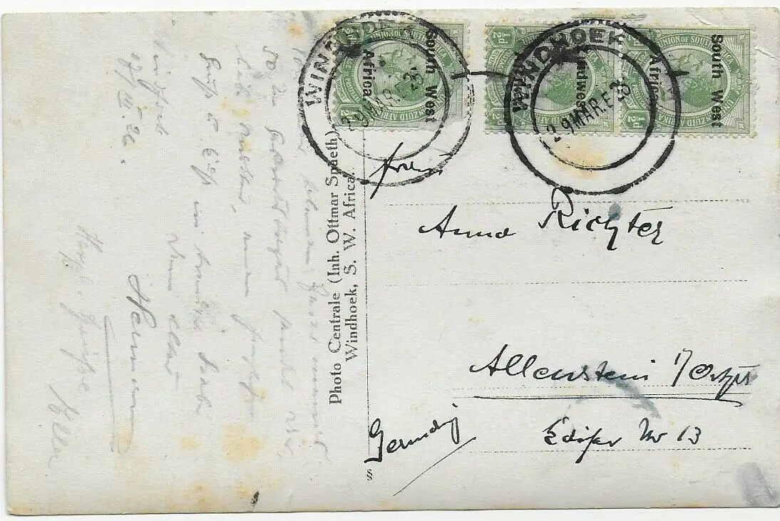 Ansichtskarte Familie bei Windhoek, 1926 nach Allenstein