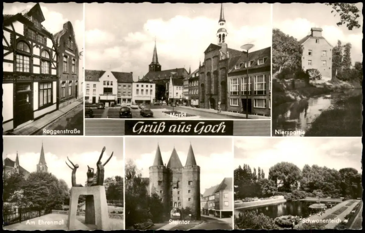 Ansichtskarte Goch Roggenstraße, Markt Ehrenmal 1965