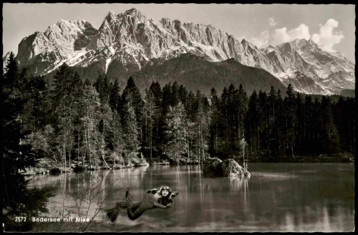 Ansichtskarte Grainau Badersee mit Nixe 1960