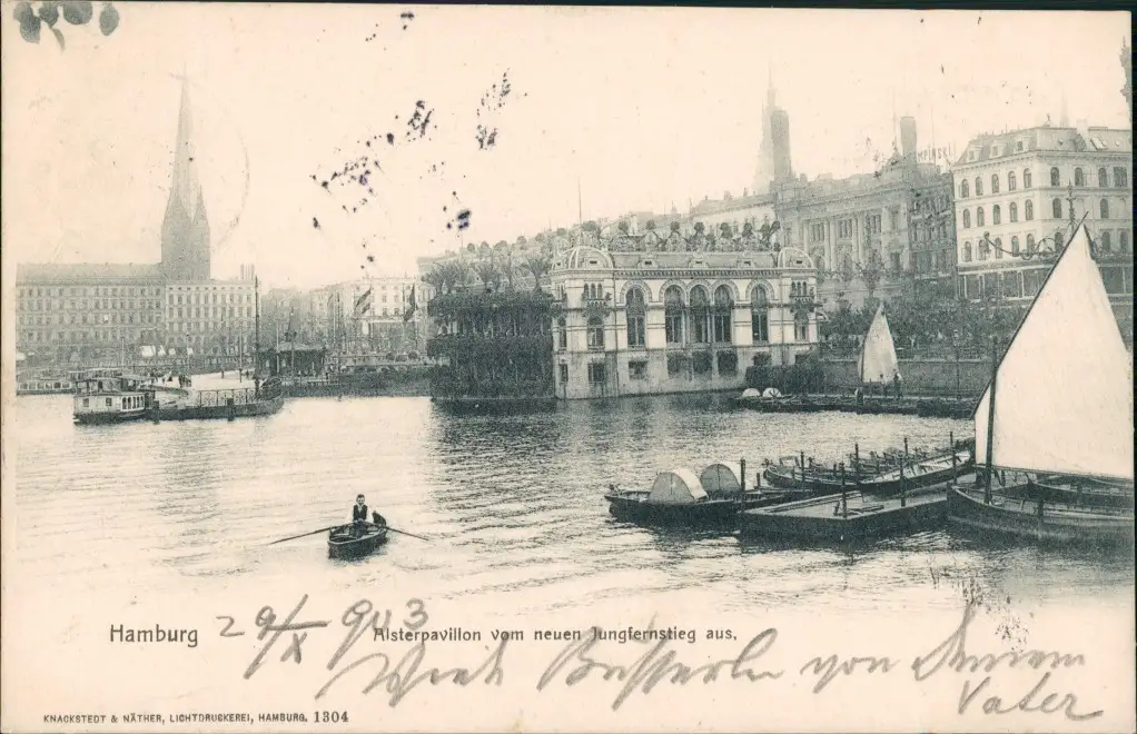 Ansichtskarte Hamburg Alsterpavillon vom Jungfernstieg 1903