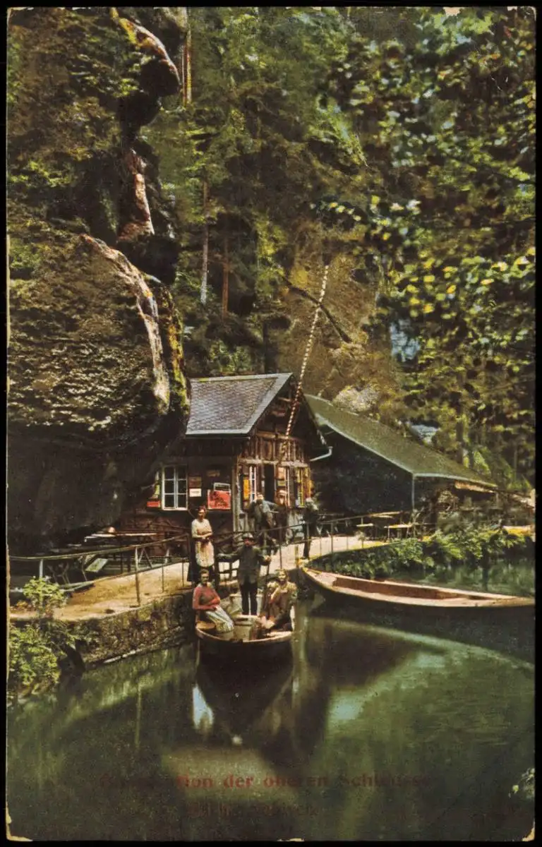Ansichtskarte Hinterhermsdorf-Sebnitz Obere Schleuse Boot mit Familie 1913