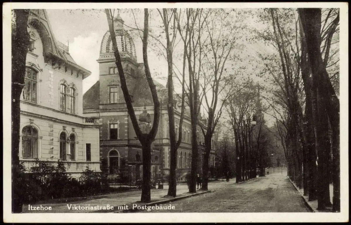 Ansichtskarte Itzehoe Viktoriastraße mit Postgebäude 1934