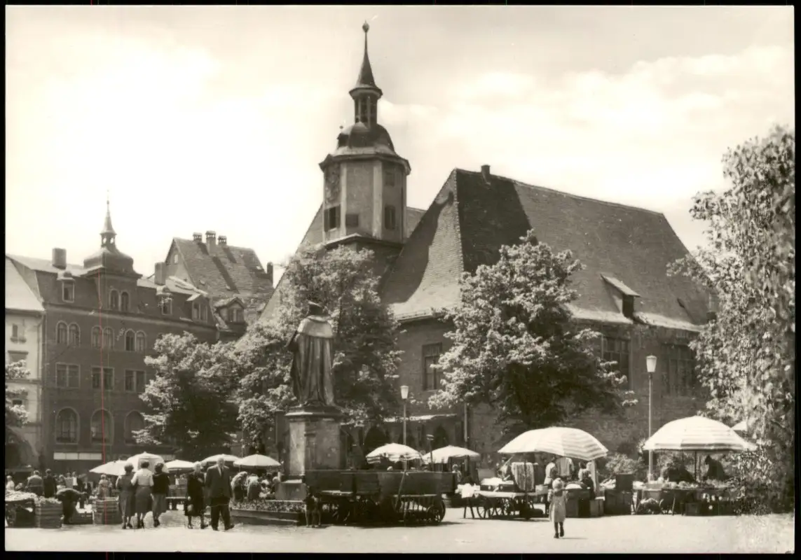 Ansichtskarte Jena Marktplatz, Markttreiben 1968