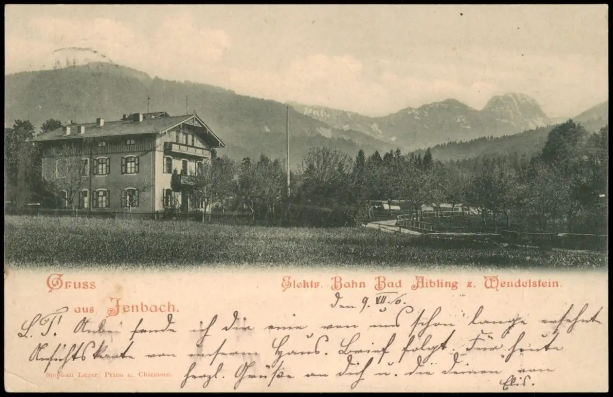 Ansichtskarte Jenbach (Tirol) Gasthaus, E-Bahn, Wendelstein 1906
