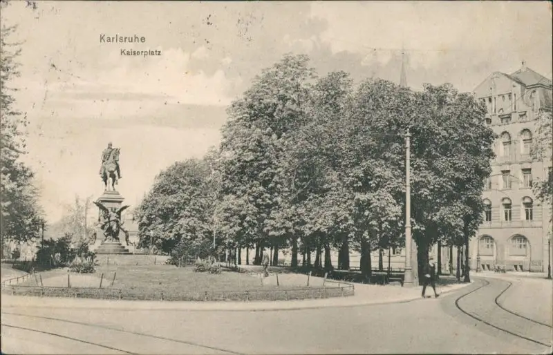Ansichtskarte Karlsruhe Strassen Partie Kaiserplatz mit Denkmal 1913