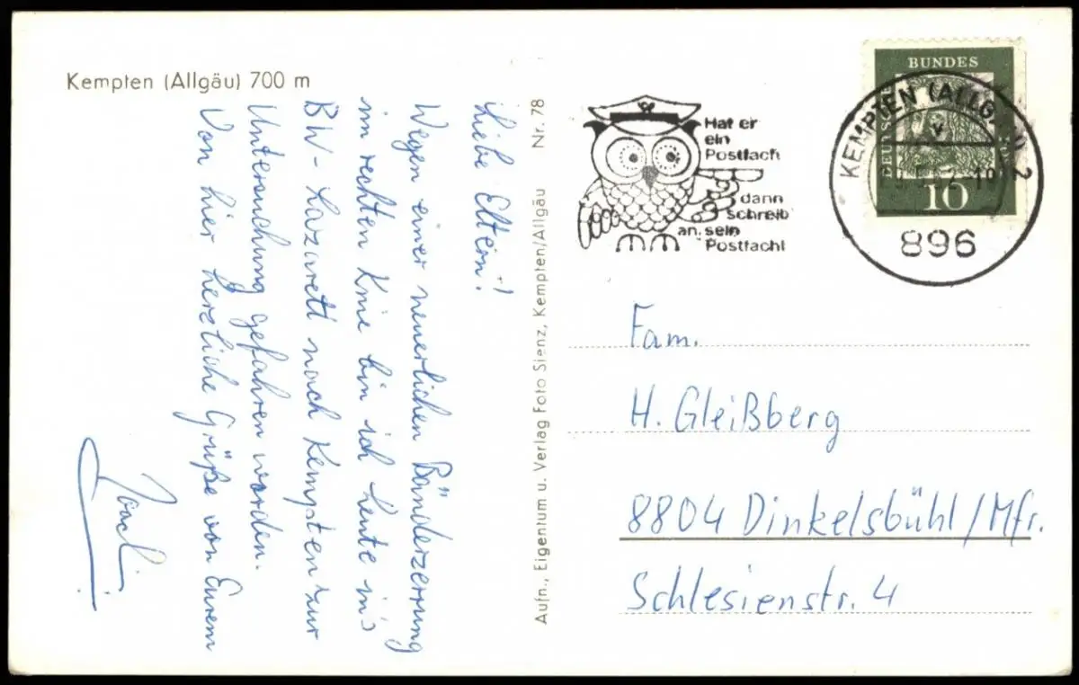Ansichtskarte Kempten (Allgäu) Panorama-Ansicht 1962