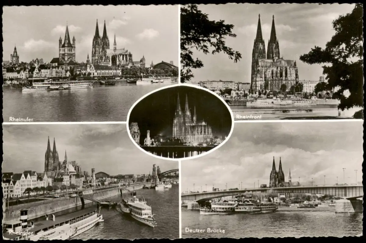 Ansichtskarte Köln 5 Bild: Rheinufer, Dom, uvm 1957