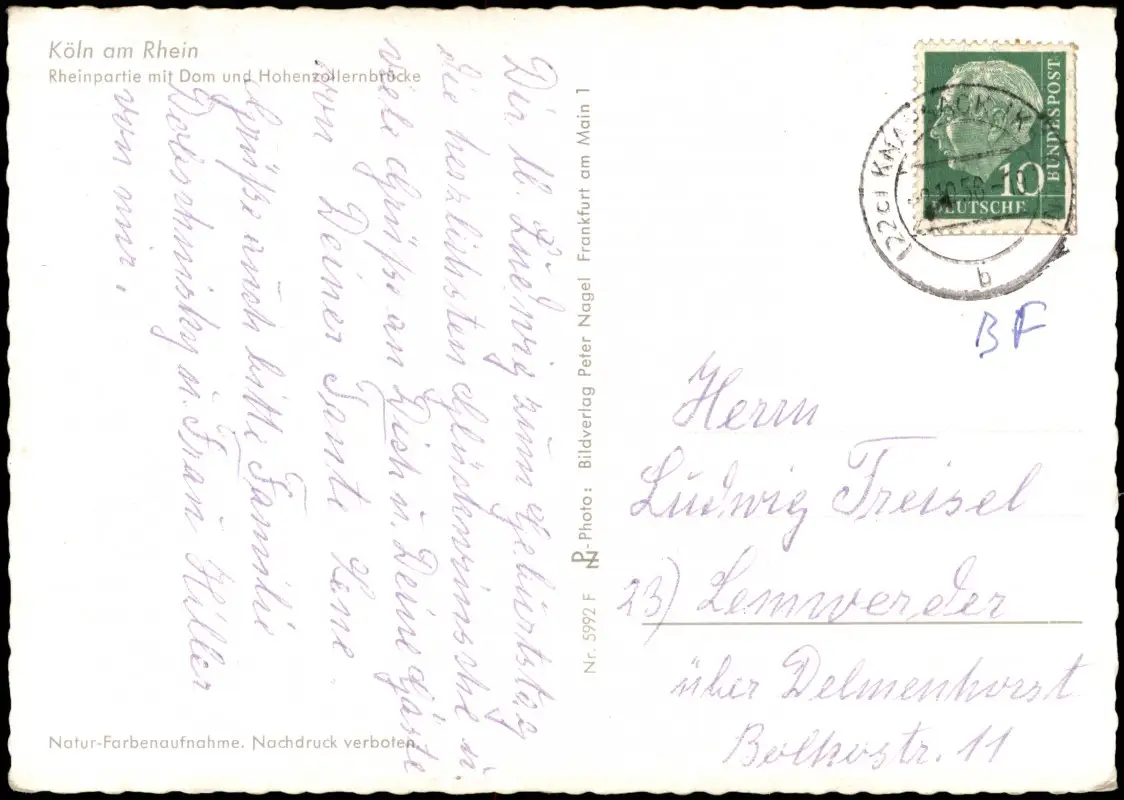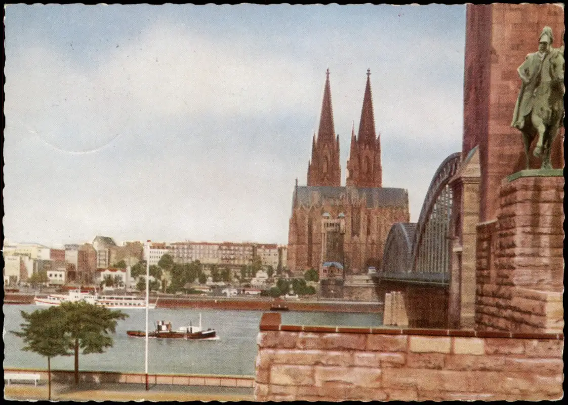Ansichtskarte Köln Dom, Brücke - Rheindampfer 1958
