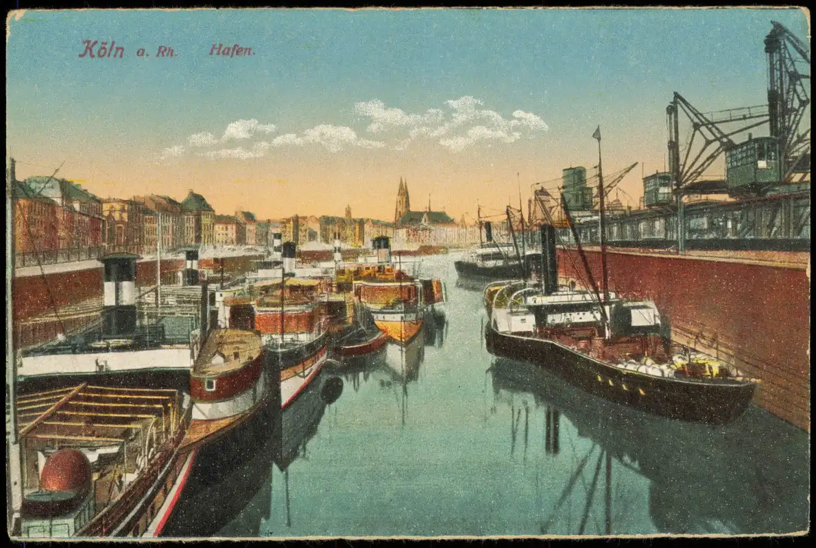 Ansichtskarte Köln Hafen Dampfer Kräne 1914
