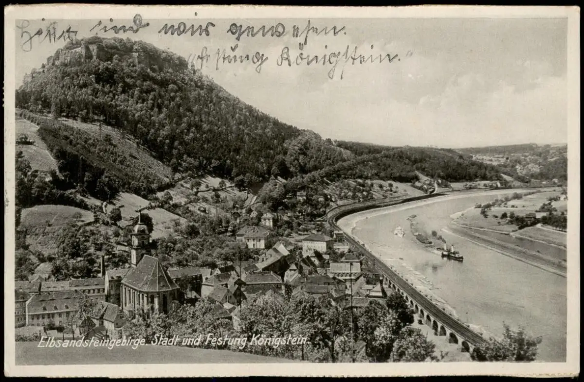 Ansichtskarte Königstein (Sächsische Schweiz) Stadt und Festung 1939