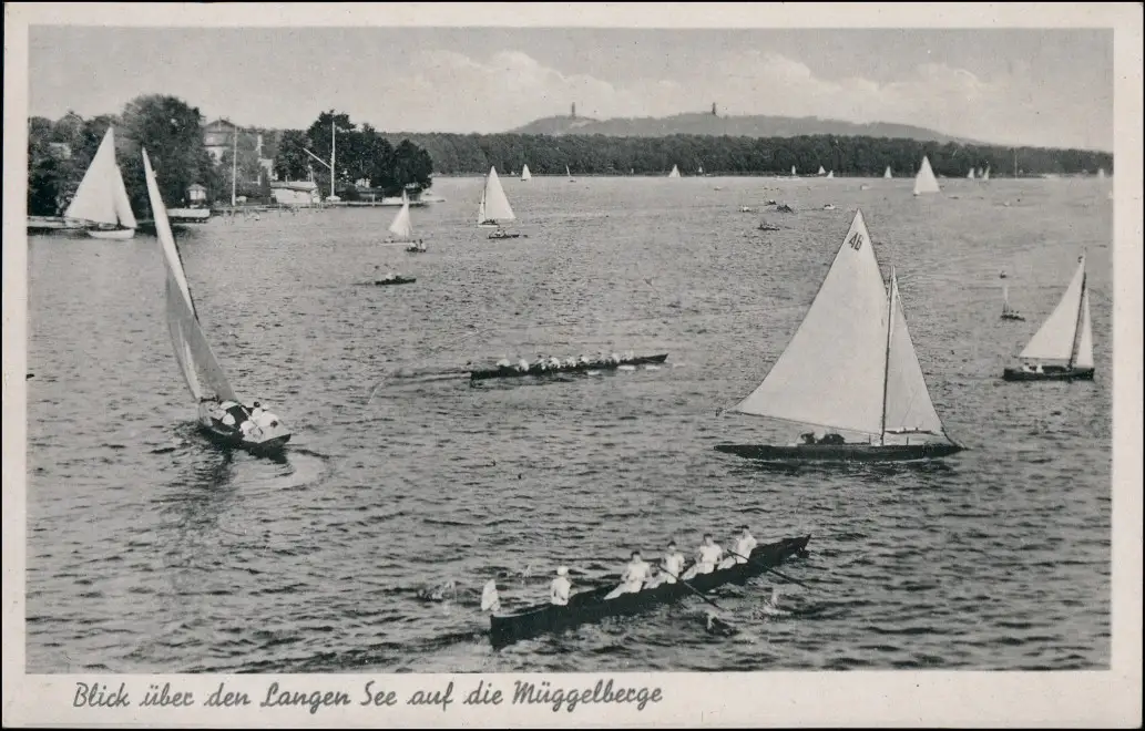 Ansichtskarte Köpenick-Berlin Langer See Segelboote Ruderer 1935
