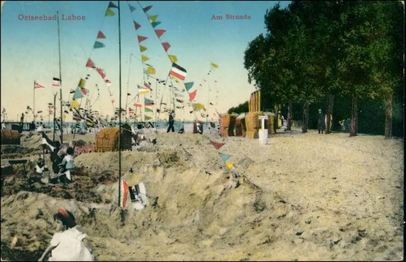 Ansichtskarte Laboe Am Strande - Wimpel, Strandkörbe 1912