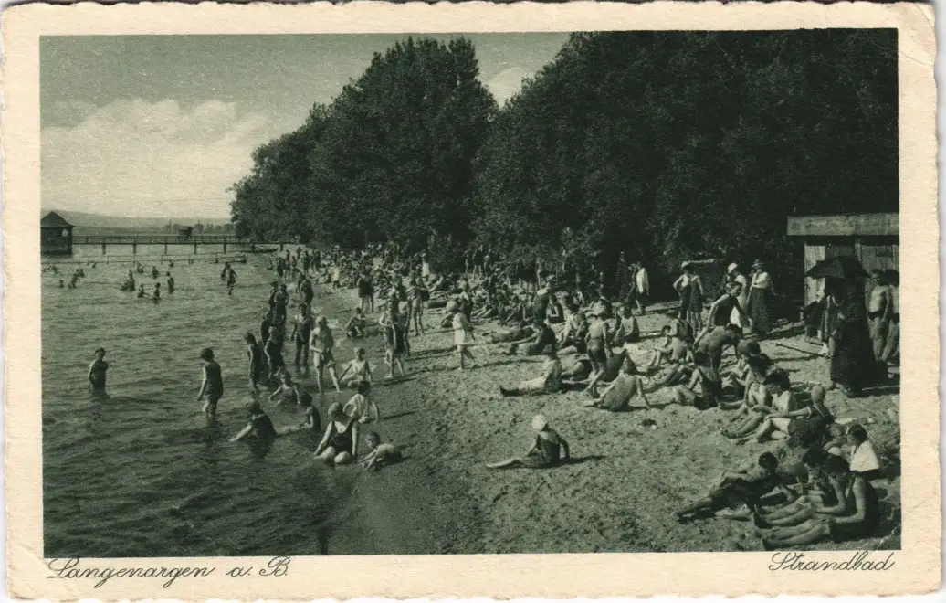 Ansichtskarte Langenargen am Bodensee Strandbad - Anleger, Hütte 1928