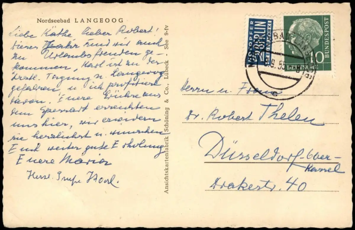 Ansichtskarte Langeoog Dünen und Strand 1955