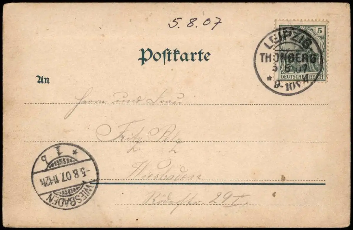 Ansichtskarte Leipzig Neues Theater Frau mit Harfe 1907