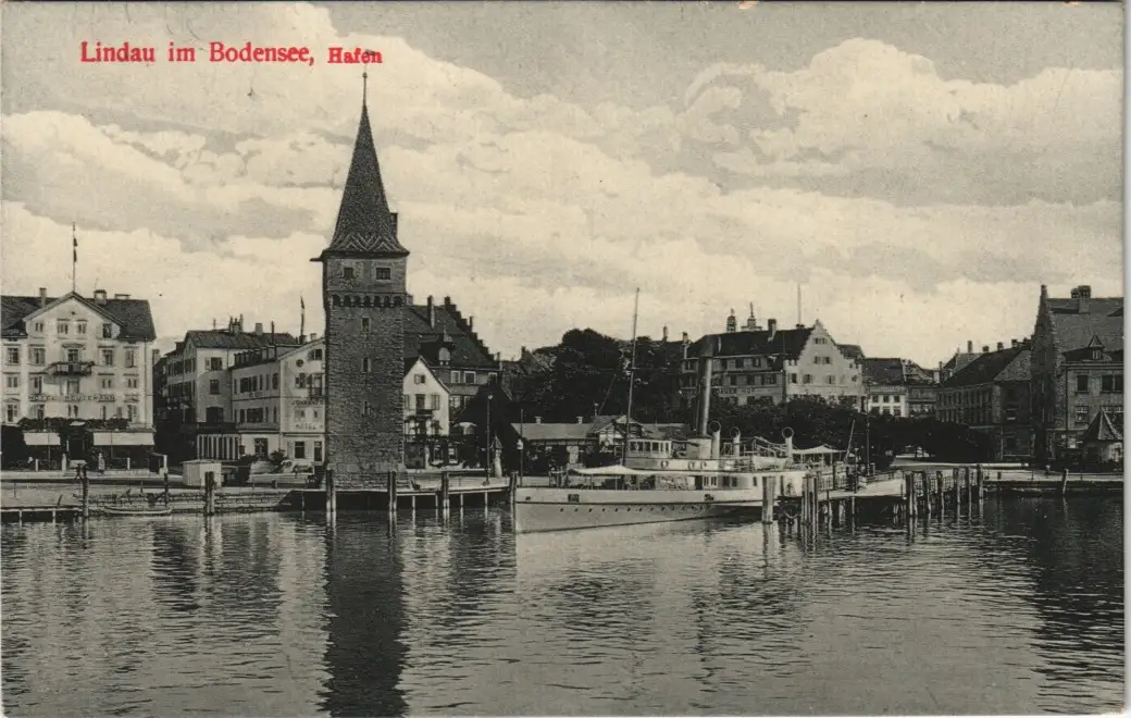 Ansichtskarte Lindau (Bodensee) Partie am Hafen Bodensee Schiff 1910