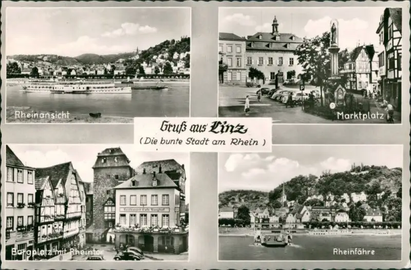 Ansichtskarte Linz am Rhein Rhein mit Dampfer, Burgplatz, Fähre, Markt 1967