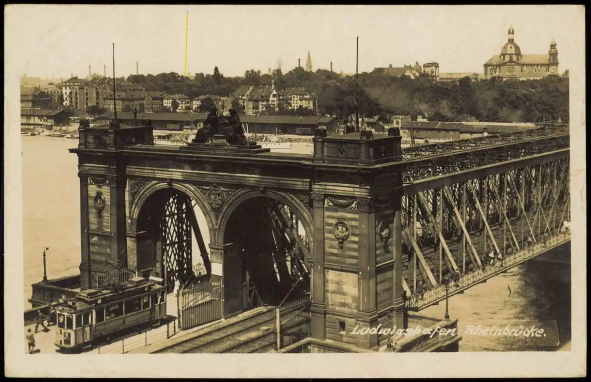 Ansichtskarte Ludwigshafen Rheinbrücke Straßenbahn 1924