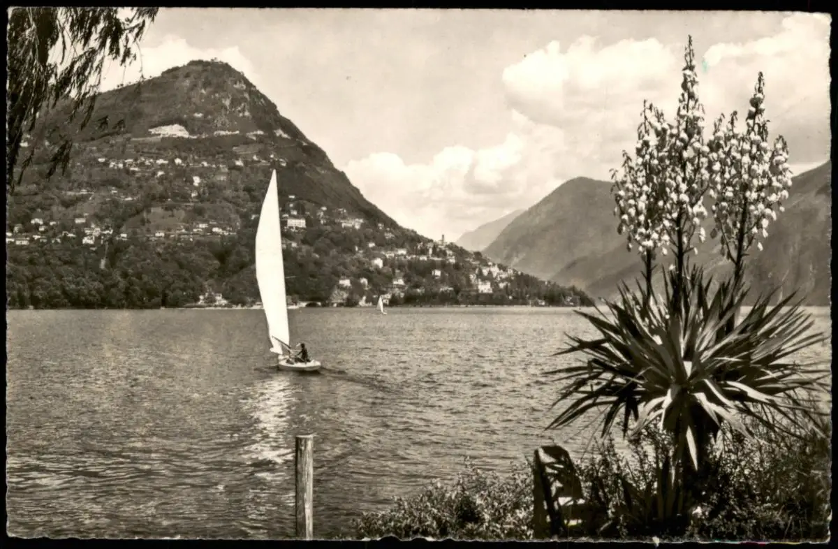 Ansichtskarte Lugano Monte Brè, Segelboot 1962