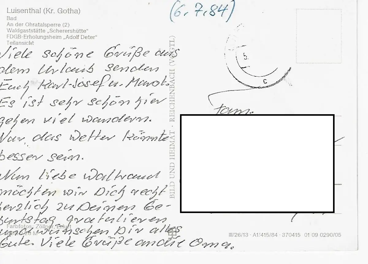 Ansichtskarte Luisenthal (Kr. Gotha) - gelaufen 1984