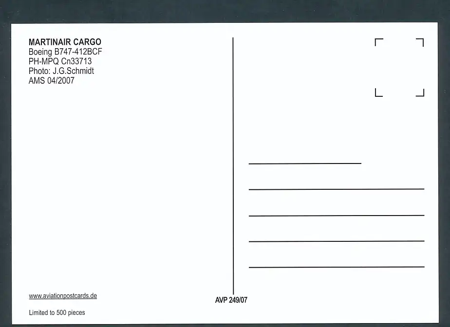 [Ansichtskarte] MARTINAIR CARGO, Boeing B747-412BCF.