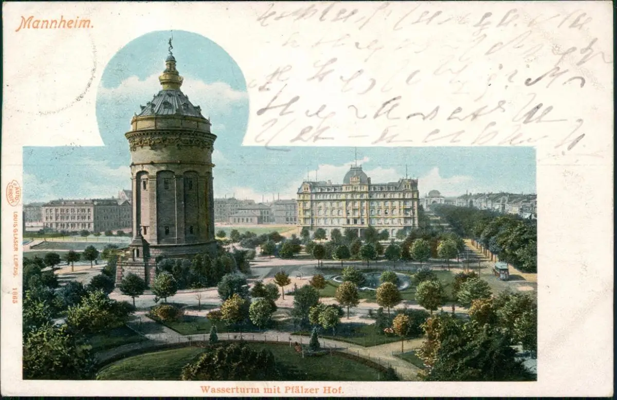 Ansichtskarte Mannheim Wasserturm mit Pfälzer Hof 1902