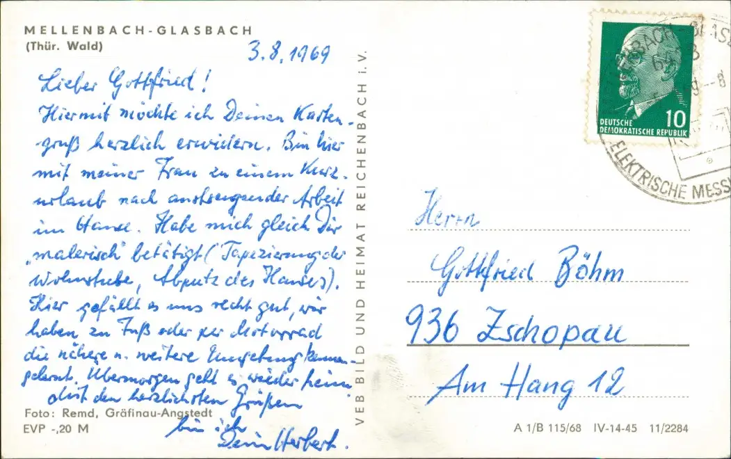 Ansichtskarte Mellenbach-Glasbach Totale 1968