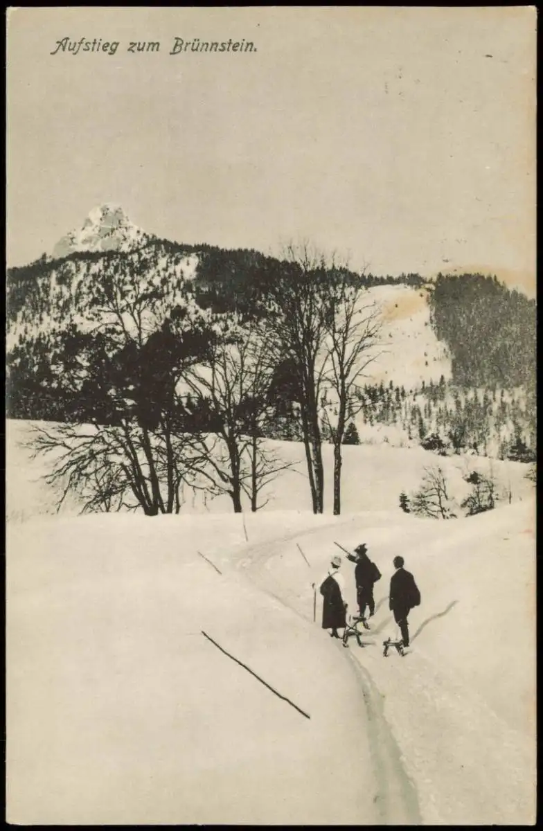 Ansichtskarte Mittenwald Aufstieg zum Brünnstein im Winter Wanderer 1909