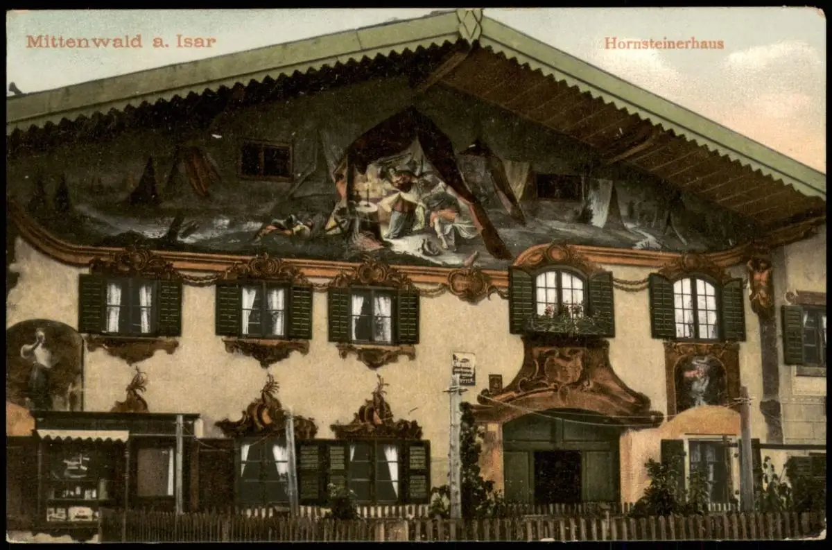 Ansichtskarte Mittenwald Hornsteinerhaus - Fassadenbemalung 1905