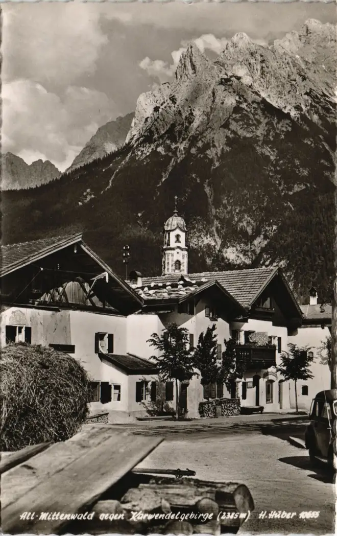 Ansichtskarte Mittenwald Straßenpartie 1956