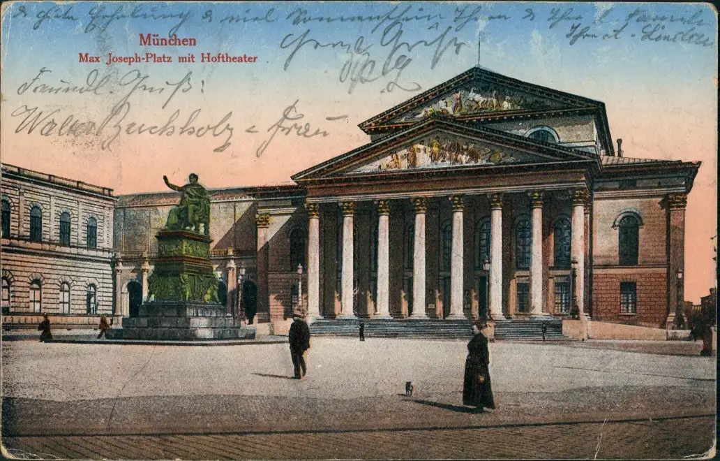 Ansichtskarte München Max Joseph-Platz mit Hoftheater 1921