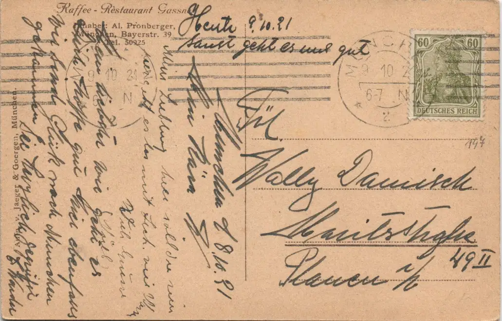 Ansichtskarte München Restaurant Gassner Bayerstr. 39 1921