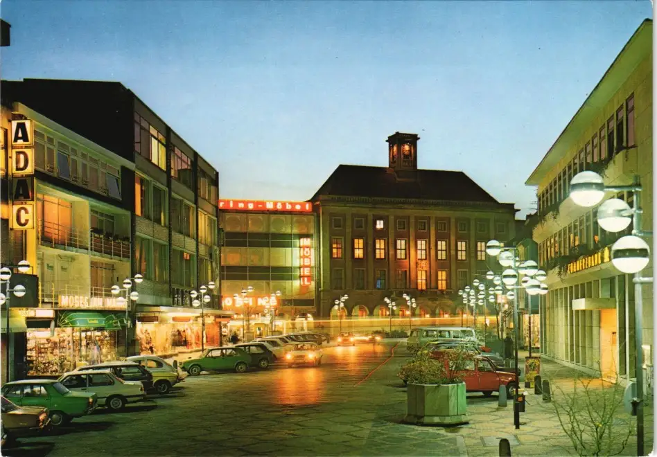 Ansichtskarte Neuss Marktplatz, Abenddämmerung - Autos 1985
