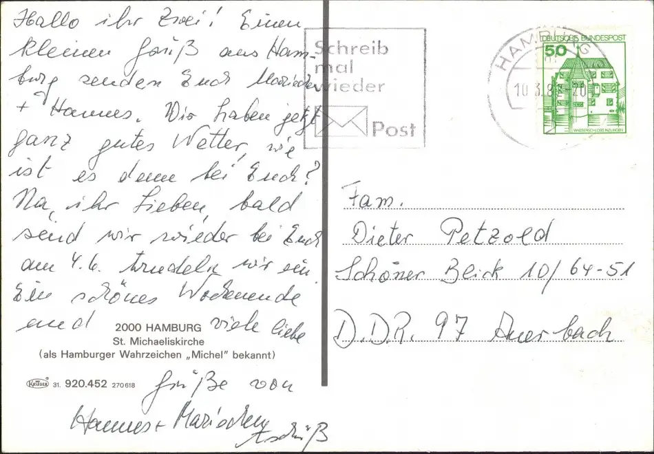 Ansichtskarte Neustadt-Hamburg Partie an der Michaeliskirche, Autos 1987