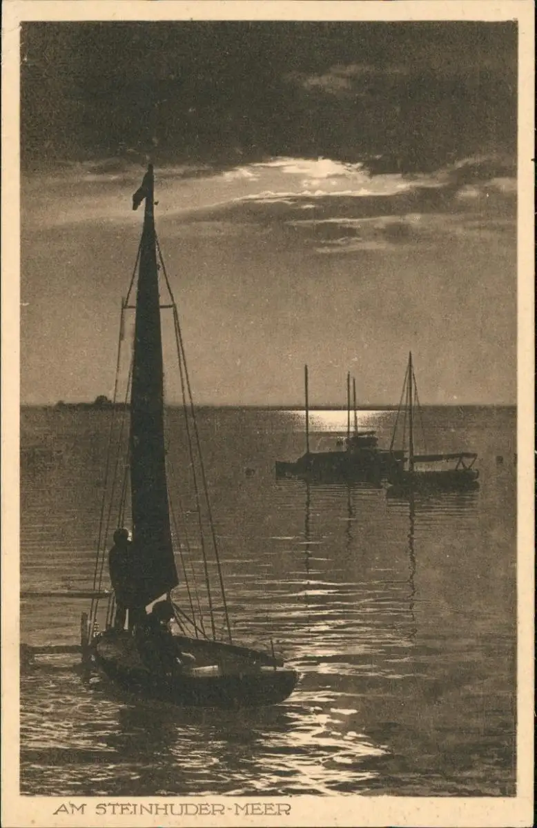 Ansichtskarte .Niedersachsen Steinhuder Meer - Segelboote bei Mondschein 1928