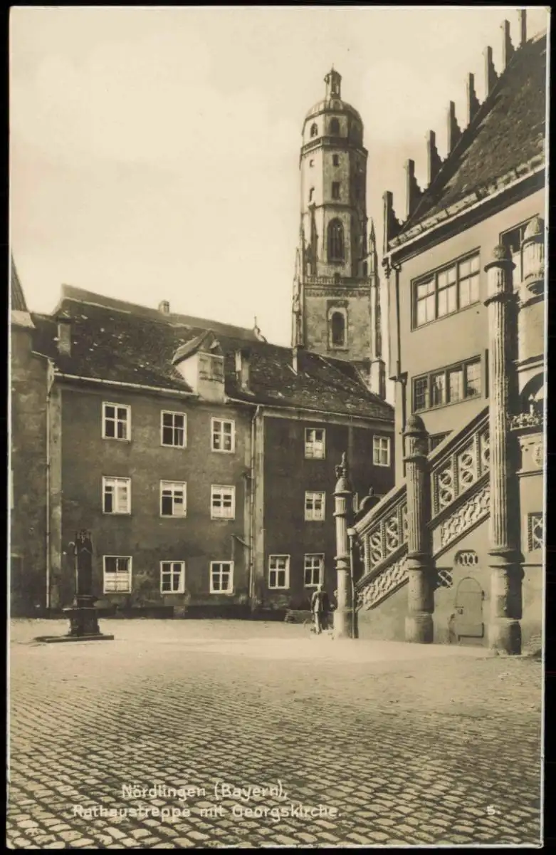 Ansichtskarte Nördlingen Rathaustreppe mit Georgskirche. 1928