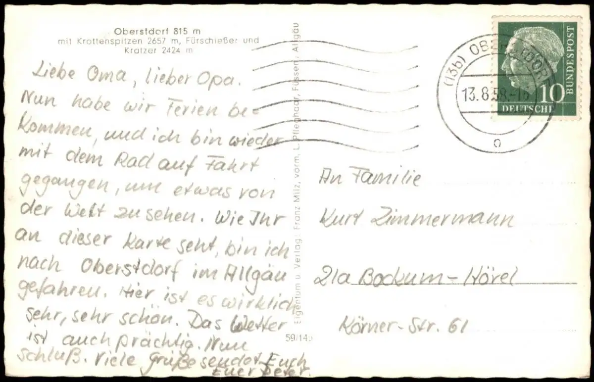Ansichtskarte Oberstdorf (Allgäu) Blick auf die Stadt 1958