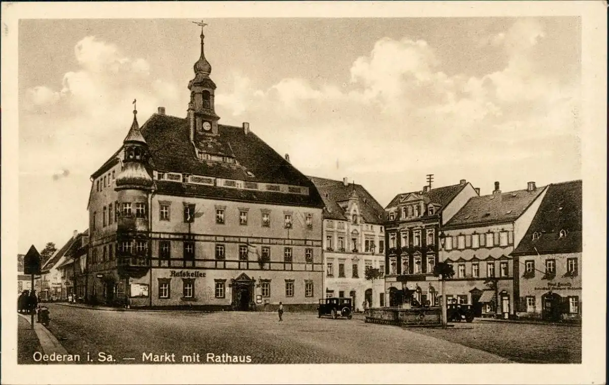 Ansichtskarte Oederan Markt mit Rathaus 1932