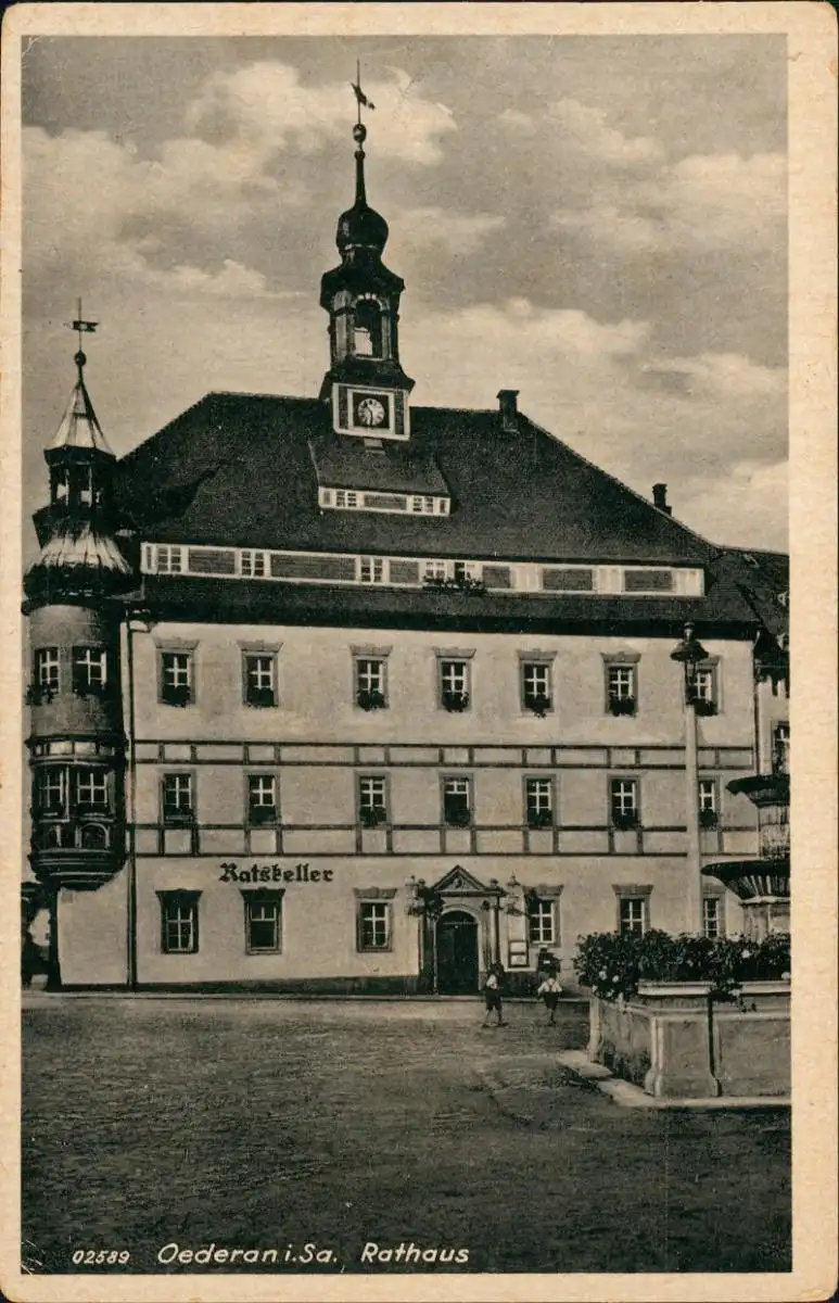 Ansichtskarte Oederan Rathaus, Ratskeller 1940