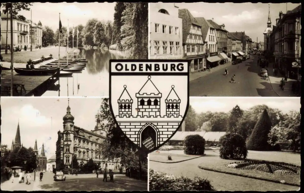 Ansichtskarte Oldenburg Straßen, Park, Bootsanleger 1964
