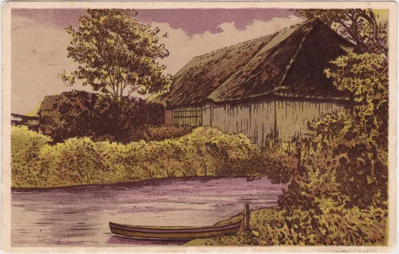 Name: Partie am Flüßchen mit Ruderboot Künstlerkarten