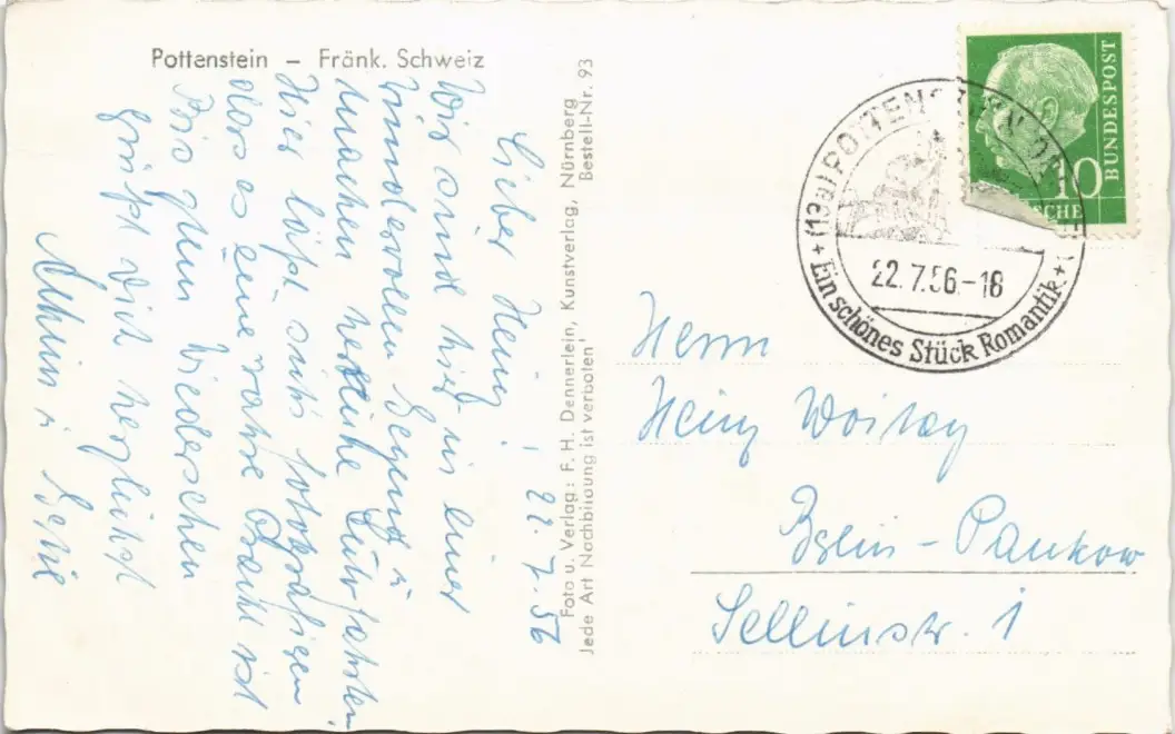 Ansichtskarte Pottenstein Blick auf die Stadt 1956