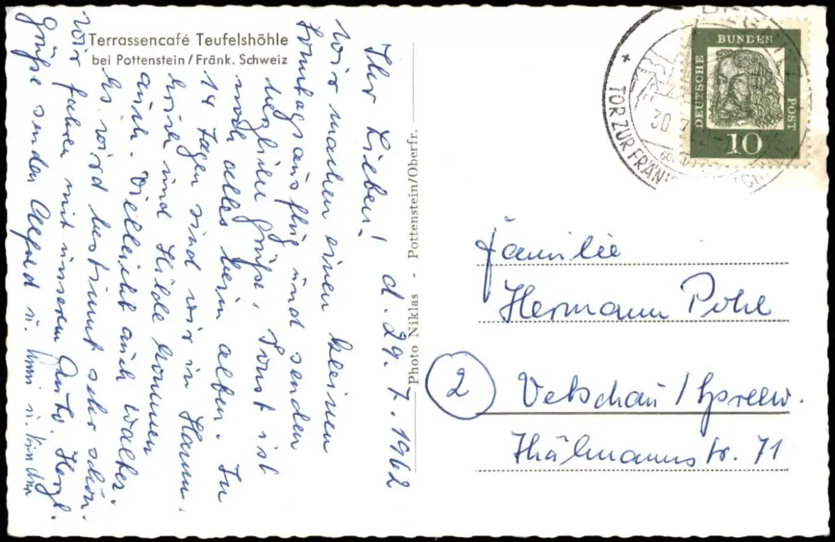 Ansichtskarte Pottenstein Terrassencafé Teufelshöhle 1962