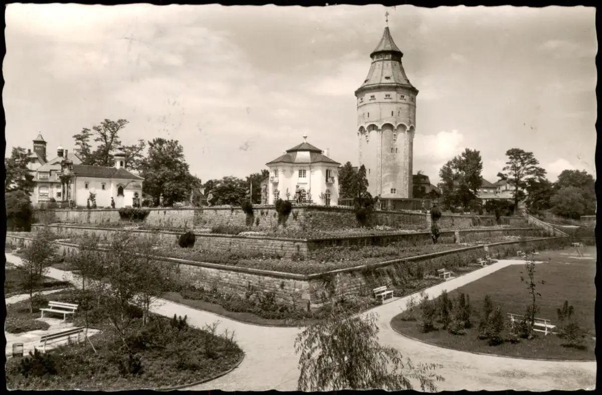 Ansichtskarte Rastatt Pagodenburg - Wasserturm mit Anlagen 1960