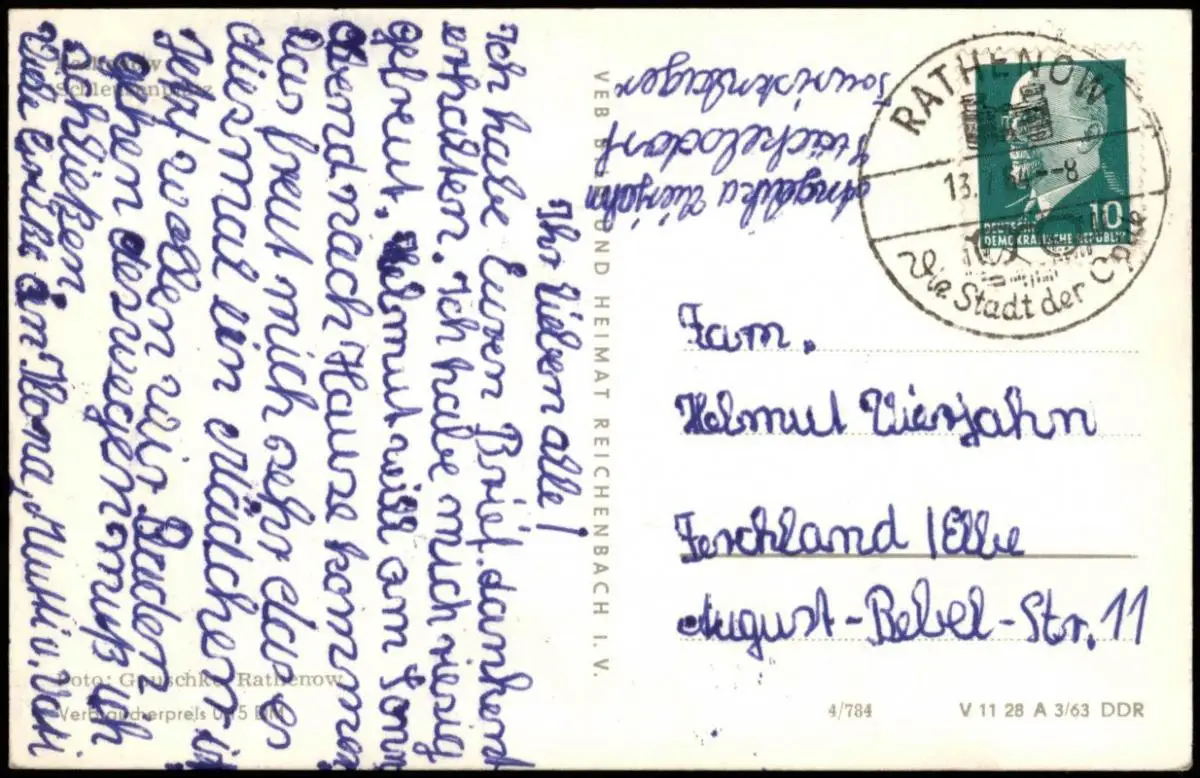 Ansichtskarte Rathenow Stadtpartie - Denkmal 1963